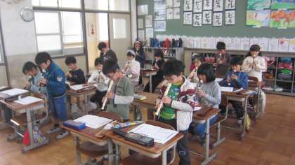 低い「ド」,「レ」を使うリコーダーの曲の練習をしています。