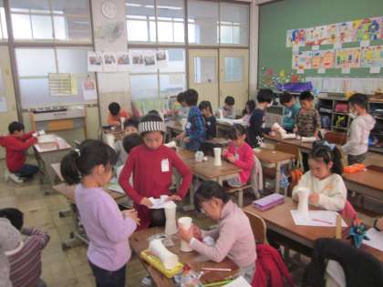 国語科の学習です。おもちゃの作り方を分かりやすく説明するためにはどんなことに気をつけたらよいのかを考え,文章にしていく学習です。まずは,けん玉を作りました。いろいろ工夫もしています。うまく説明できるでしょうか。