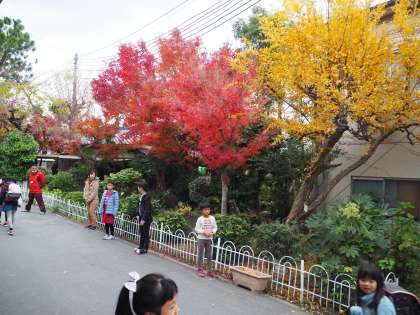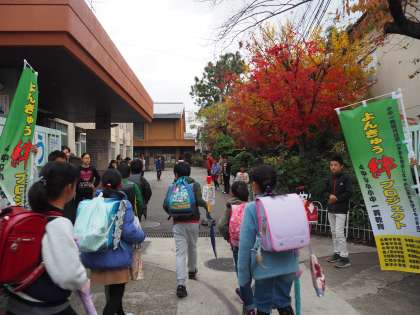 朱六の森の紅葉も今が盛りです。あいさつ運動も定着してきました。