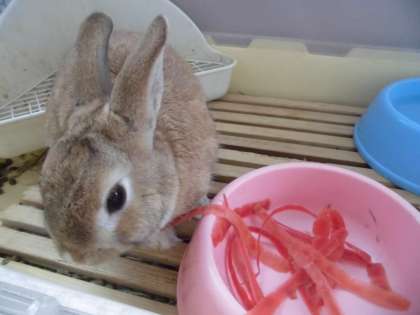おやつに金時人参の皮をもらったピョン!