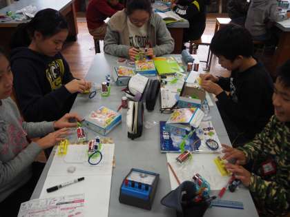 5年生は、理科室で電磁石の実験です。いよいよ電流計を使って、電流の大きさや、コイルも巻き数を変えて、電磁石の力の強さを比較します。条件を整理して、実験して比較すること、比較と論理的な展開を学ぶ場面です。