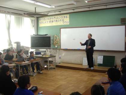 ご指導いただきましたのは,地域の小倉さんです。空気・風の力などの理科の話を伺った後,空気の力を利用した「紙飛行機」の作成に取り組みました。
