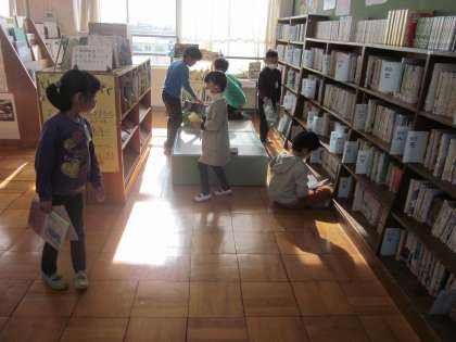 久しぶりにみんなで図書館へ行きました。新しい本もたくさんあり,どの本にしようか迷っていました。次の日の朝読書では,本に夢中になっている様子も見られました。