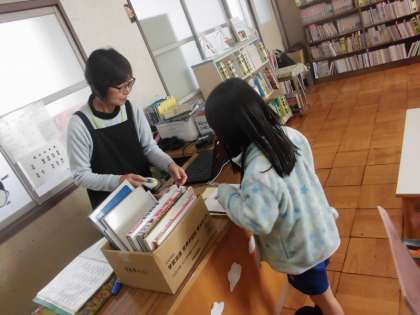 冬休みに借りていた本を返し,新しい本を借りました。友だちの紹介から興味が広がっているようです。いろいろな種類の本に触れあって欲しいものです。