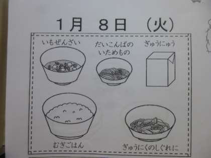 今日は新年初めての給食です。給食前になると給食室からいい香りがして来て,子どもたちも久しぶりの給食が待ち遠しい様子でした。