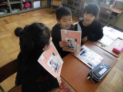 「うつくしいわがし」という教材を通して,「日本の伝統」について学習しました。和菓子だけでなく,昔から伝わる行事や遊び,食べ物などがいろいろあることを知りました。また,生活科で昔あそびをしたり,音楽でわらべうたを関連して学んでいきます。