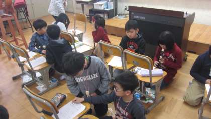 そして,みんながつくったせんりつを班のみんなで演奏しました。