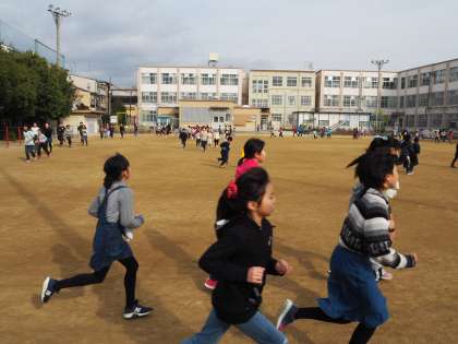 1月25日(金)中間休みを利用した業間マラソンです。みんな一生懸命走っています。