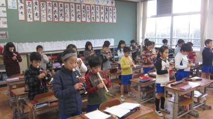 歌を歌った後は,リコーダーの演奏の練習です。