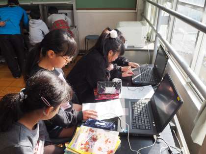 2月5日(火)4年生がコンピュータルームで調べ学習をしています。入り口を見ると、靴がきれいにそろえて脱いでありました。「なんだ靴か」と思うかもしれませんが、大切なことです。そろえて置いておこうという心構えは、学習に臨む心がまえにつながります。