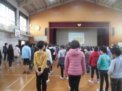 今日は,2月の朝会がありました。校長先生からは,みんなで一つのことを頑張ることの素晴らしさについて,お話がありました。木曜日の校内持久走記録会に向けて,みんなで励まし合い,競い合いながら頑張ってほしいと思います。