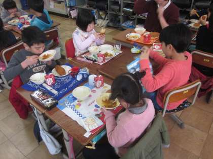 今日の給食は,新献立でした。鶏肉とうずら卵のスパイシーいためでした。初めての献立にわくわく。「おいしい!」「もっとたくさん食べたい。」と味わいながらいただきました。