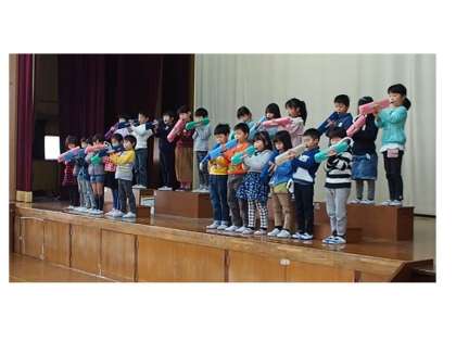 体育では縄跳びを披露したり、音楽手は鍵盤ハーモニカの合奏を発表しました。