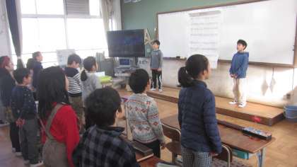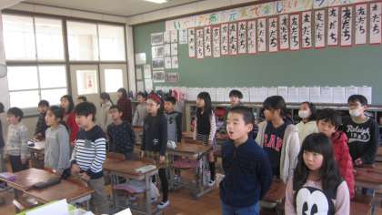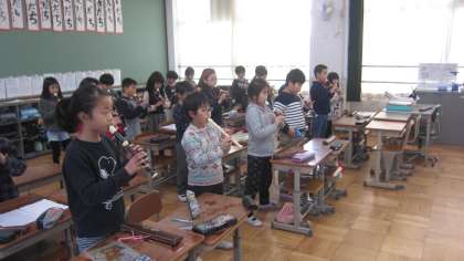 今日は以前に児童集会で歌っていた「明日に向かって」を歌ったり,リコーダーで演奏したりしました。