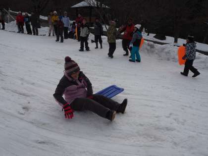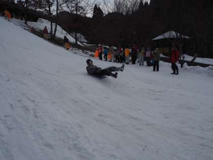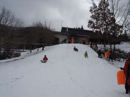 2月17日(日)午後冬山オリエンテーリングのあとは、そり遊びです。施設の中にちょうど良いスロープがあり、そこで滑ります。最初おっかなびっくりで、うまくいきいませんが、慣れてくると上手に滑ることができます。子供たちは本当に上達が早いものです。雪の上での活動にみんな良い笑顔をしています。思いっきり遊ぼう〜。