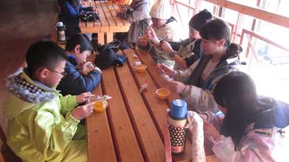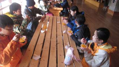 散策に後は休憩です。みかんゼリーにほっと一息。