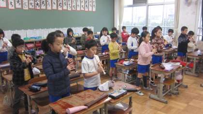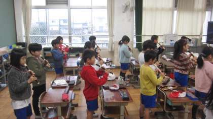 授業参観に向けてリコーダーの演奏,歌う練習を頑張っています。