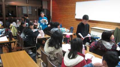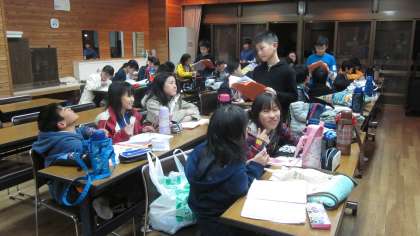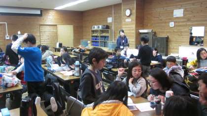 3日目の振返り、そして班のリーダーから明日以降の連絡の様子です。