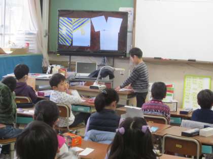 『はこの形』の学習をしています。はこの面をうつし,面にはどんな特徴があるかを考えました。