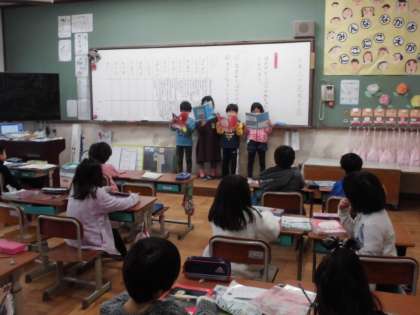 本を使っていろいろな動物の赤ちゃんについて調べました。それぞれの赤ちゃんの「生まれたばかりの様子」「大きくなっていく様子」をまとめたものをグループごとに発表しました。最後にみんなで10種種類以上の動物の赤ちゃんの違いを比べました。それぞれ似ているところや違うところが分かって面白かったです。