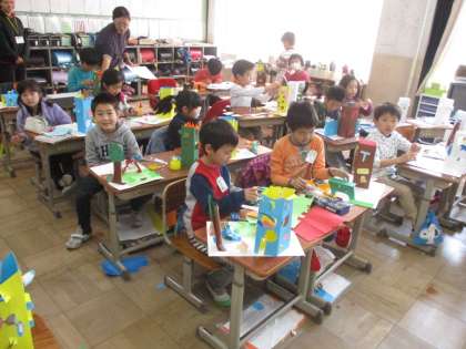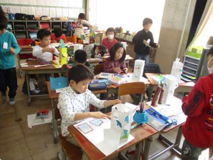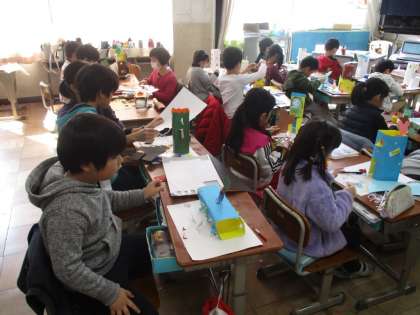 2月22日(金)2年生の図工の授業です。形を作り、色を付けて行きます。モノを作る、できあがって行く過程、その中には、面白さや楽しみが凝縮されています。子どもの表情がそれを物語っています。