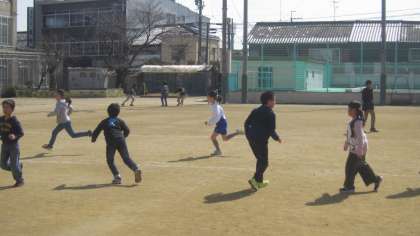 元気にグラウンドで遊んでいました。