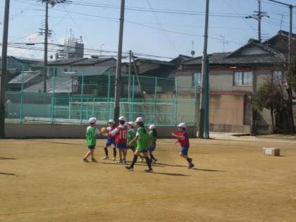 日差しが温かい3時間目に体育をしました。パスゲームも4回目の学習になりました。今回からは自分たちで考えためあてにむかって学習します。「ボールを持ったらすぐにパスをする。」「パスがもらえるように動く」などみんなで考えました。だいぶん動きもよくなってきましたが,ボールをもらったらすばやくパスをするための工夫がまだまだ要りそうです。
