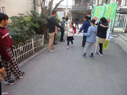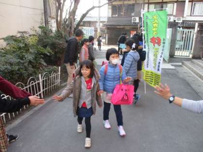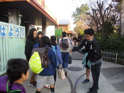 2月26日(火)日差しの暖かさを感じる朝です。2月最後のあいさつ運動です。