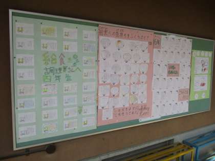 給食週間が終わり、生徒たちが給食調理員の方に感謝のメッセージを書いています。