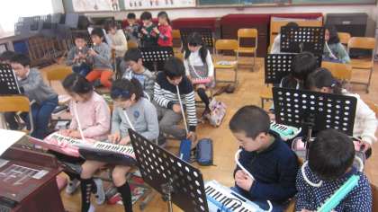 今日の音楽科の授業からミッキーマウスマーチの合奏の練習を始めました。