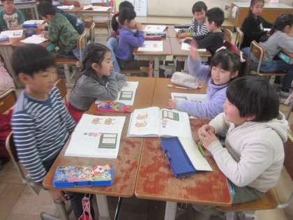 国語科の話し合いの学習をしました。テーマは、来年の「1年生を迎える会の出し物」そして,「お楽しみ会にどんなことをするか」について考えました。グループで話の進め役を決めて話しました。意見をしっかりとまとめて交流することができました。