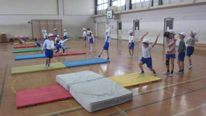 マット運動の学習に取り組んでいます。