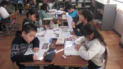 資料を使って昔から続く行事やお祭りについていろいろなことをよみとっています。