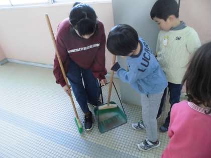 1年 掃除時間「お助け隊参上!」