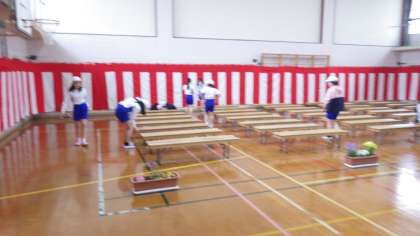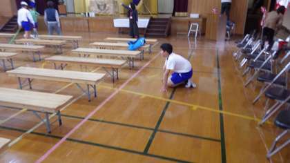 明日の式の用意をしました。速い動きだけでなく,丁寧にできていました!椅子の縦と横も揃えていました。すばらしい!