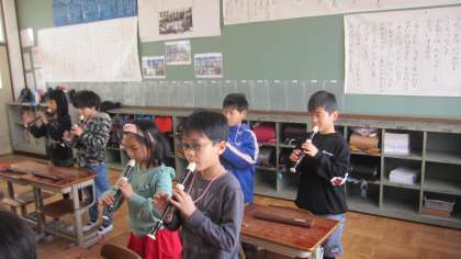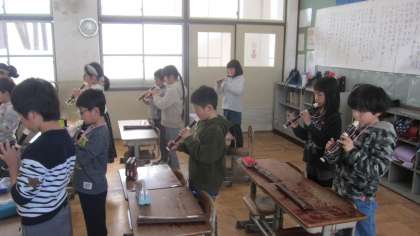 朝の会では,1年間大切にしてきたリコーダーの演奏を今日も行いました。