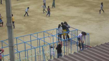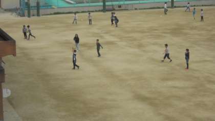 教室の窓から見た休み時間の子どもたちの様子です。