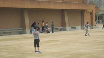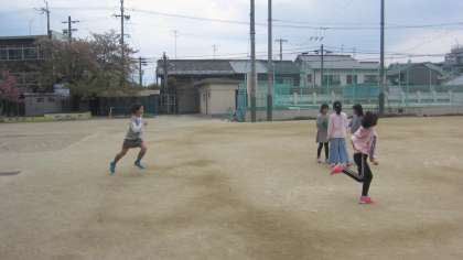 元気にグラウンドで遊ぶ。