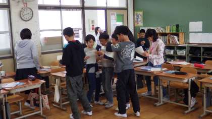 配る物があればほとんどの人が動くので早く配り終わります。いつもご苦労様!