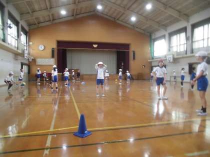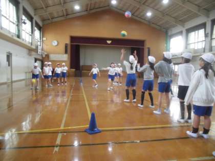 2時間目の体育では,ボールを使って体を動かすいろいろな運動にチャレンジしました。ボールを思い通りに操ること,子どもたちにとっては,意外と難しいようです。