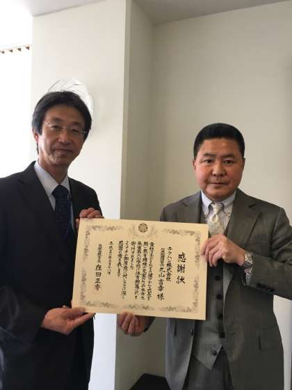 体育館幕の寄贈に対し感謝状が贈呈されました。