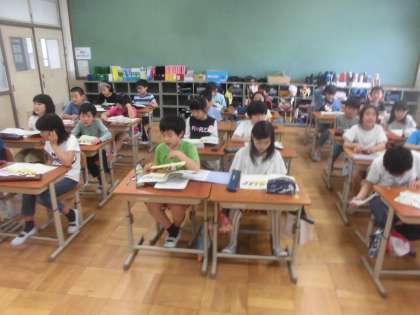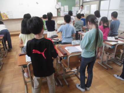 音楽の時間,歌を歌っていたら校長先生がやってこられました。校長先生に聴いてもらおうとみんなはっきりと大きな声で歌っていました。ついでに,リコーダーの演奏も聴いていただき,少し褒められて嬉しそうな4年生でした。