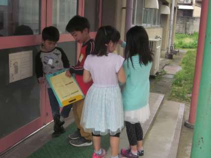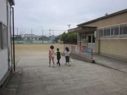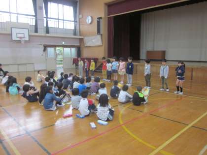 今日は2年生が1年生を学校たんけんに招待しました。カードをもって教室を回っていきます。職員室では,2年生が入り方を教えました。上手に名前を言って職員室に入り,スタンプをもらっていました。手をつないだり,教室の案内を言ったり聞いたりする姿は微笑ましかったです。