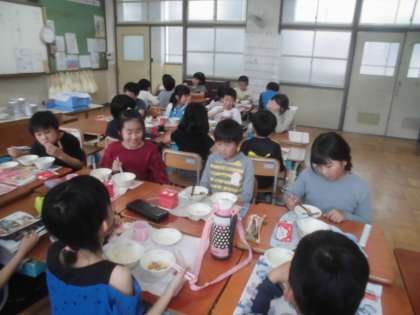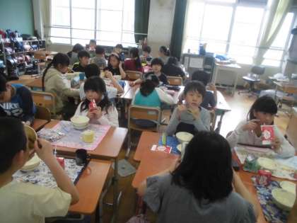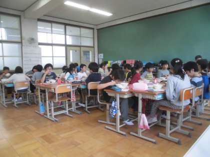 毎日,4時間目頃にになると「お腹がすいた」の声がちらほら…。待ち遠しかった給食時間を楽しんでいる4年生です。給食調理員さん,毎日おいしい給食をありがとうございます。