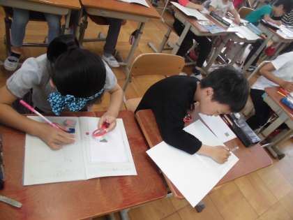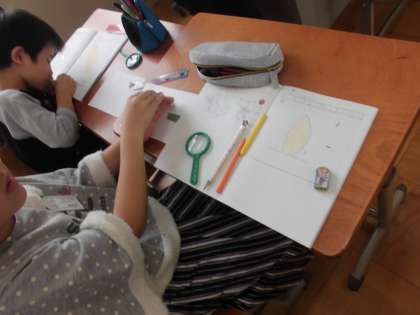学校の畑にキャベツが育っています。今日の理科の時間は,そのキャベツに産み付けられたチョウのたまごを虫めがねで観察しました。小さなたまごにびっくりしていました。ノートには,たまごの様子を丁寧に書いていました。この小さなたまごがチョウになるよう世話の方法もしっかり勉強していました。