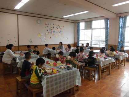 今日の給食は,栄養教諭の前田先生と一緒にランチルームで食べました。教室とは違った雰囲気で,子どもたちはとても楽しそうでした。来週は,食の学習があります。どんなことを教えていただけるか楽しみです。