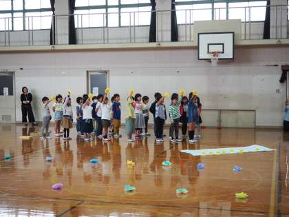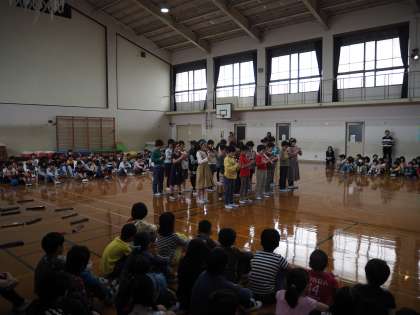 写真は上から2年、3年、4年です。2年合唱と大きな作品作りのパフォーマンスを 3年も横1列なっての合唱です。4年はリコーダーの合奏です。それぞれ工夫を凝らしていました。