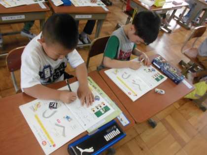 「とめ」と「はらい」に気をつけながら,ひらがなの練習をしました。教科書での練習の後,ノートに今まで習った字を使ったことばあつめをしました。