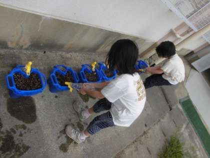 今週から朝の用意のあとは,水やりを欠かさずしています。金曜日に植えた種から芽が出てきました。「早く出てほしいな〜」と首を長くして待っています。