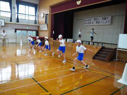 5月21日(火)昨夜の雨も朝方には止みましたが、グラウンドの状態は良くなく、この日グラウンドは使えません。でも普段から朝ランニングの習慣がついてきた6年生は、みんな朝早く登校してきます。そこで体育館でのトレーニングに切り替えです。もう6年生には週2回朝早く登校して走ることがルーティンになっているようです。よい習慣が身についてきています。これはきっと力になることでしょう。